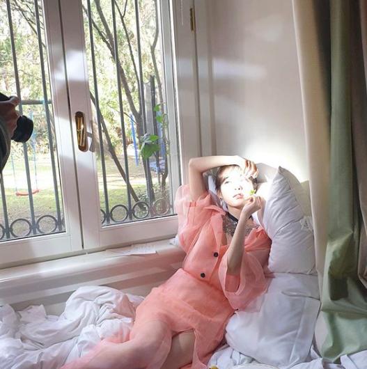 IU是谁?IU属于哪个公司?李知恩IU穿粉色薄纱长裙气质温柔对镜自拍俏皮可爱
