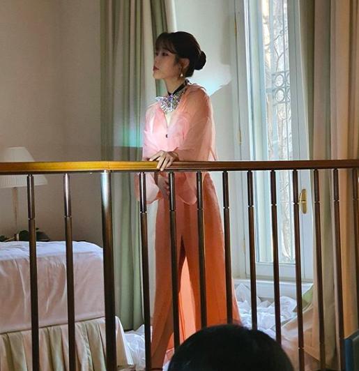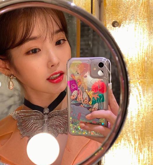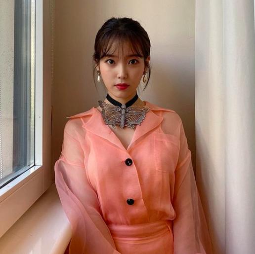 2月20日,IU在个人社交网站晒出了一组近照。照片中,她身穿粉色薄纱长裙,对镜自拍,温柔可爱,如同“邻家妹妹”。
