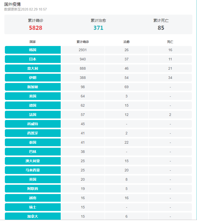 目前,韩国确诊人数已近3000,意大利24小时内增加239例,冰岛、摩纳哥公国、墨西哥确诊首例新冠肺炎病例……
