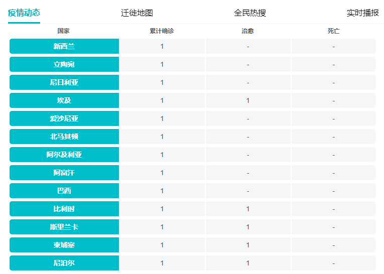 新增确诊国家
