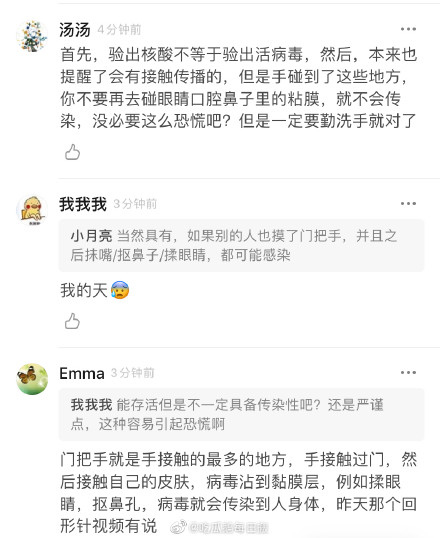 而对于普通社区居民,风险更多来自于间接接触,“如果病毒附着在物体表面,自己的手触摸到被污染的物体表面后进食、揉眼睛等动作,可能会造成自己感染。”
