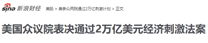 3月25日,美国开启直升机撒钱模式。美国国会提交2万亿经济刺激计划,参议院全票通过该历史上最强经济刺激计划,众议院很快也通过该计划。