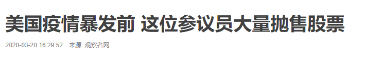 这不,前几天刚刚爆出消息。美国参议院情报委员会主席保尔,在疫情爆发之前就警告金主爸爸们,新冠疫情会像“西班牙大流感”那样扩散开来,一定要做好过冬的准备,自己也在美股暴跌之前精准逃顶。