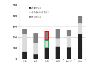 所以,当前美国居民部门、非金融企业部门的杠杆率并不高。2007年次贷危机的时候,美国居民部门杠杆率达到103%,而2020年仅为70%;2007年美国五大行杠杆率达到88倍,而2020年美国四大行(雷曼倒闭)的杠杆率不足13倍。