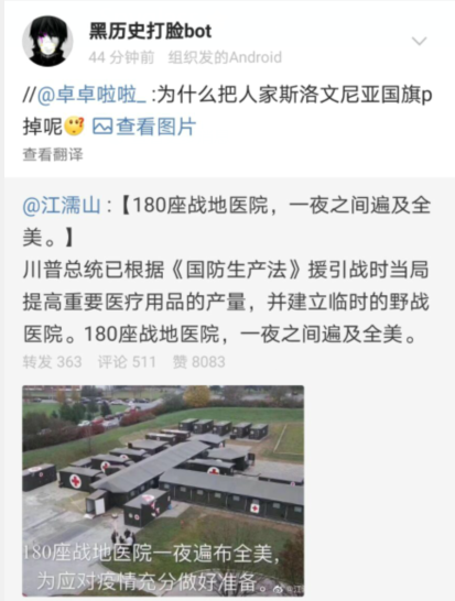这不是一件坏事——虽然很多人都不高兴,并且希望微博封掉美国大使馆账号——但是微博更应该做的,其实是把他们的这几个微博推送到每一个微博用户的时间线上,保证接下来几个月里大家每天上线看到的第一个就是那几条微博,而且武汉病毒四个字最好自带闪光效果:狼来了喊一万遍,远不如让狼真的嚎一嗓子;这几个微博对于大家的教育意义,至少顶得上一万个无脑翻译机器。
