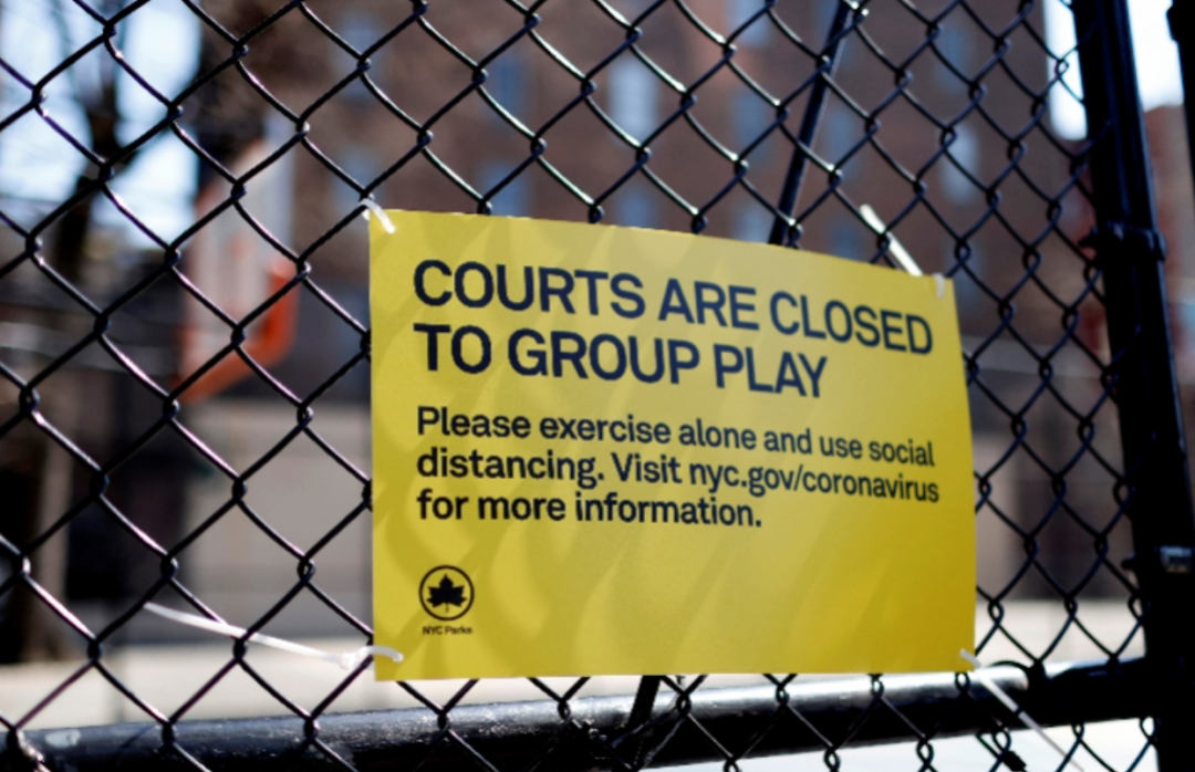 曾经繁华的纽约已经成为一座“空城”,充满着死寂的味道,大街上再也没有飞驰的滑板少年,篮球场上再也没有跳跃的灵魂,只有上锁的大门、被拆除的篮筐、沉默的军警、令人恐惧的防护装备......你把任何一部好莱坞末日灾难片换成这个背景,都毫无违和感,甚至更加真实。