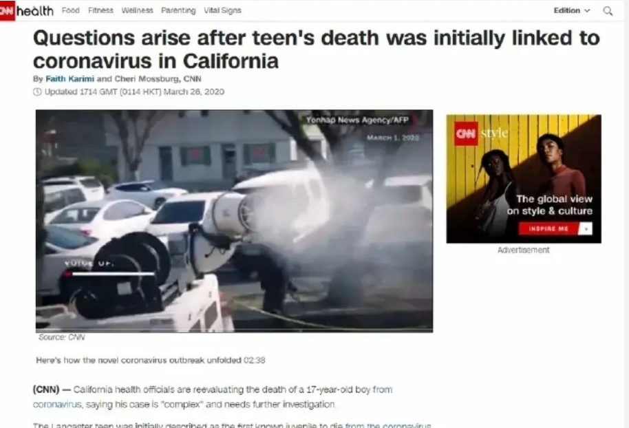 在宣布这名少年因新冠肺炎死亡后没多久,当地官方又发布了新的通报,声称“这一病例病情复杂,尽管此前病毒检测呈阳性,但他的死因可能有其他可能性,本案例将由美国疾控中心重新核查”。当地时间3月25日早上,这名少年已被移出当地新冠病毒死亡病例名单。已经检测阳性了,死亡后居然还能被移除新冠病毒死亡名单?