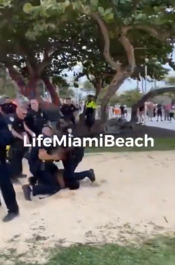 还有更荒诞的事情,我听说在迈阿密阳光明媚的海滩上,人们只是自由地晒晒太阳、吹吹海风,警察和军队居然对着民众开枪,暴力执法,强行驱散民众,用武力殴打有色人种,现场一片混乱,到处都是惊呼和哭叫声,海滩上散落着一地的手机。
